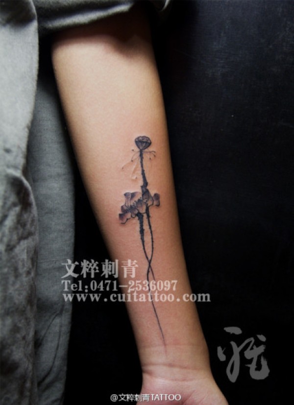 女生手臂唯美流行的水墨莲花纹身图案_女生纹身图案大全_纹身图吧