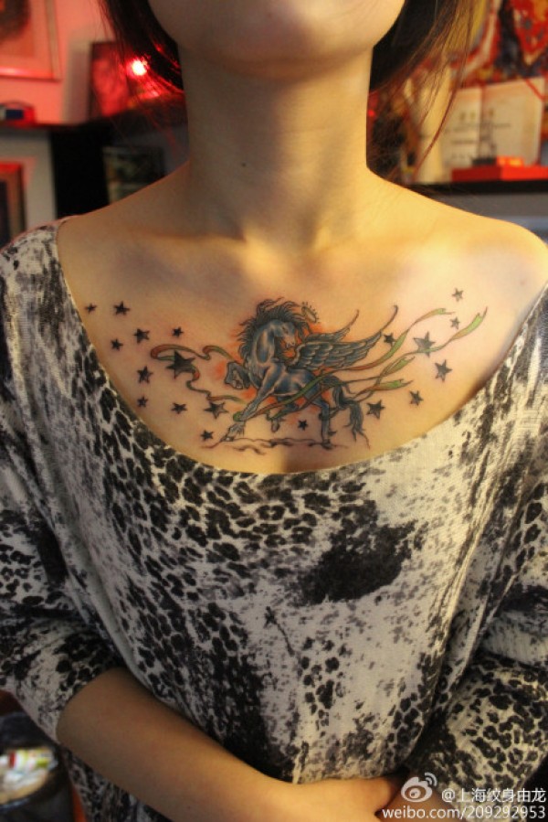 美女前胸帅气超酷的天马纹身图案_女生纹身图案大全_纹身图吧