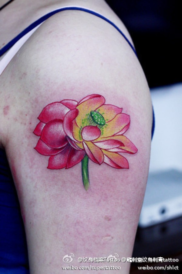 女生手臂艳丽漂亮的彩色莲花纹身图案_女生纹身图案大全_纹身图吧