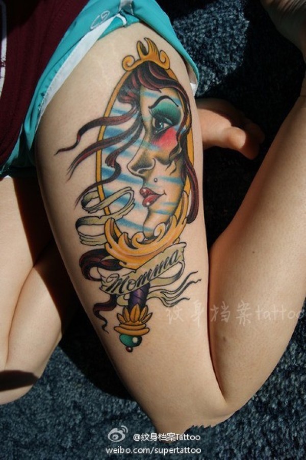女生腿部经典时尚的镜子纹身图案_女生纹身图案大全_纹身图吧