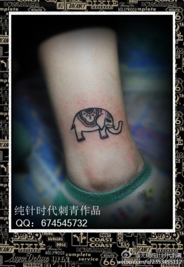 女生脚踝处小巧可爱的小象纹身图案_女生纹身图案大全_纹身图吧