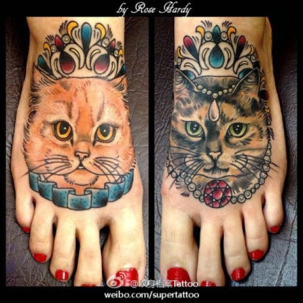 女生脚背时尚流行的猫咪纹身图案_女生纹身图案大全_纹身图吧