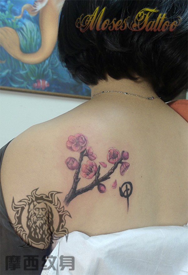 女生肩背唯美时尚的梅花纹身图案_女生纹身图案大全_纹身图吧
