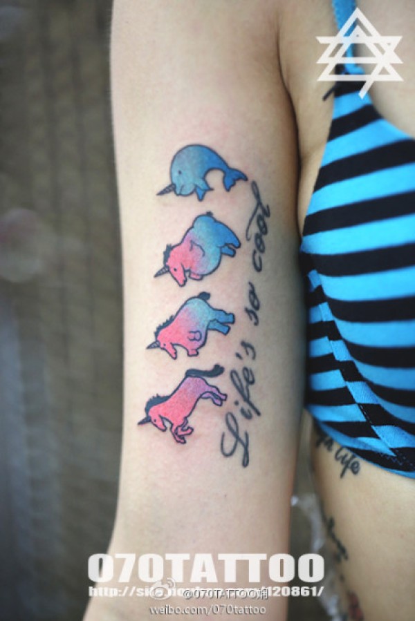 女生手臂小巧可爱的独角兽纹身图案_女生纹身图案大全_纹身图吧
