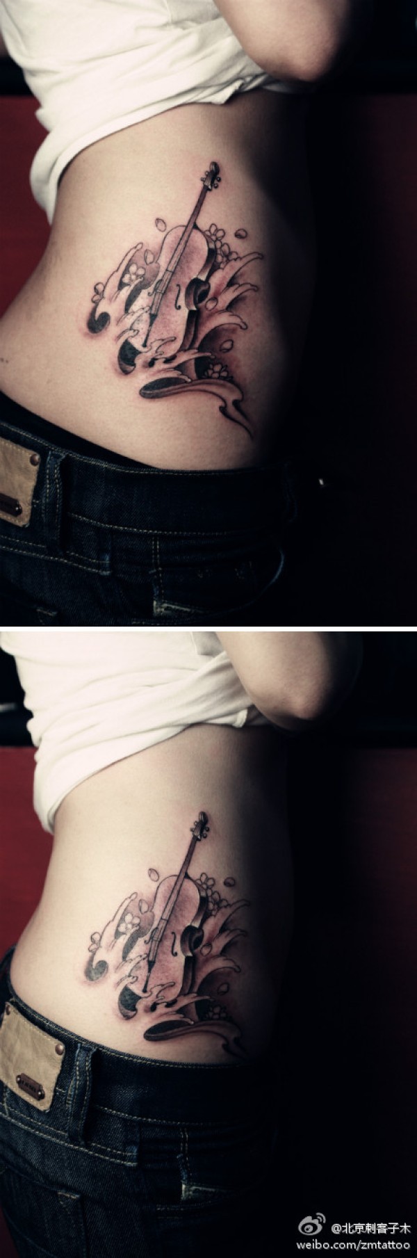 女生腰部唯美时尚的小提琴纹身图案_女生纹身图案大全_纹身图吧