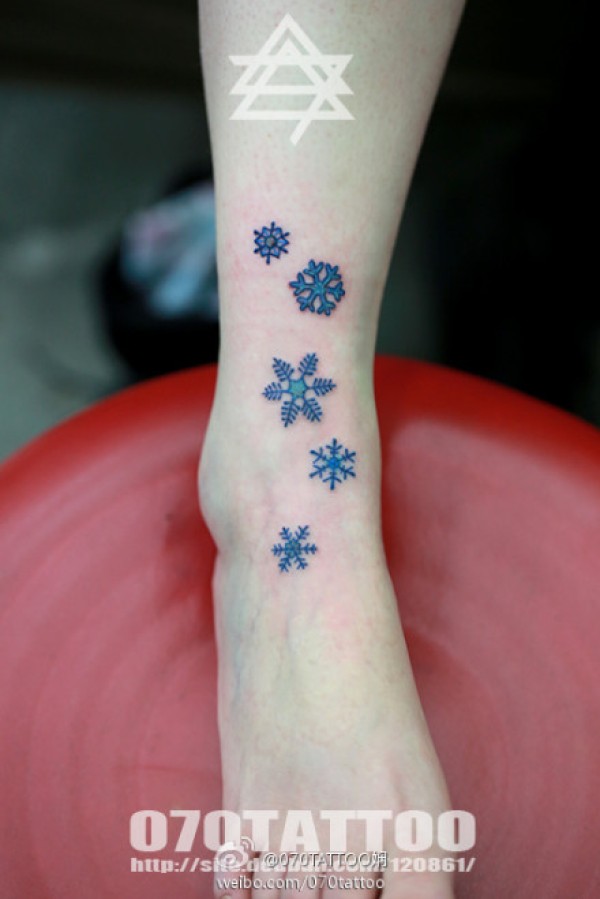 女生脚部唯美流行的彩色雪花纹身图案_女生纹身图案大全_纹身图吧