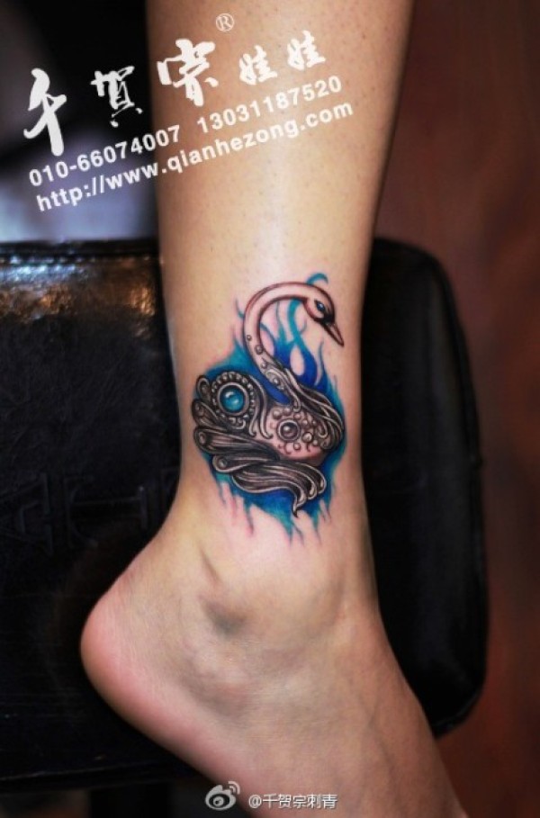 女生腿部小天鹅纹身图案_女生纹身图案大全_纹身图吧
