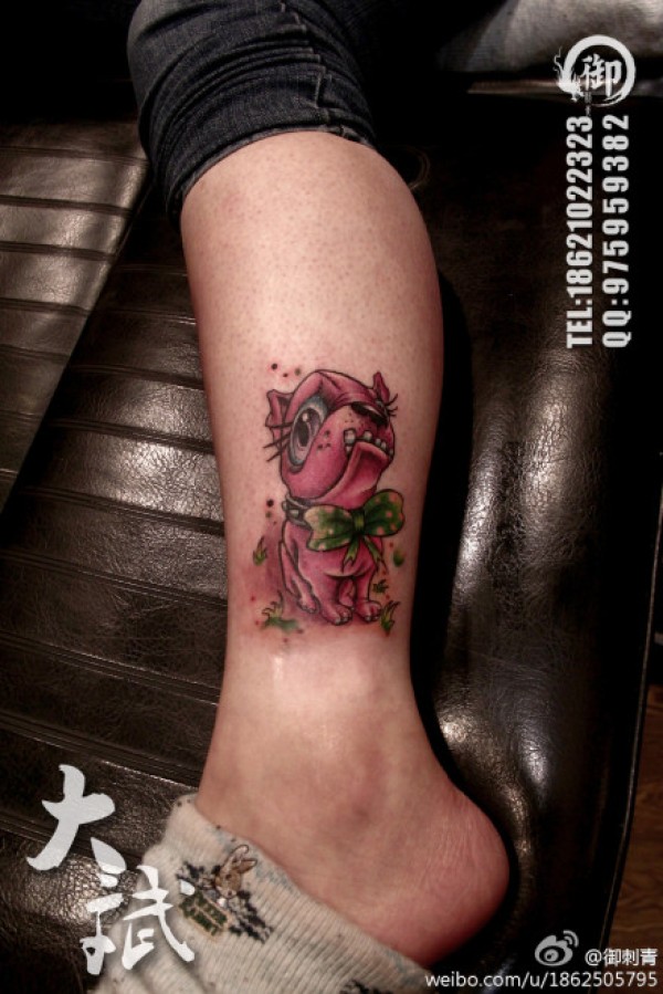 女生腿部小巧的斗牛犬纹身图案_女生纹身图案大全_纹身图吧