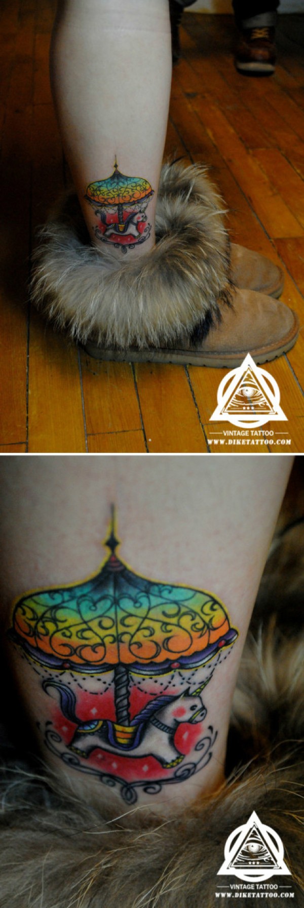 女生腿部时尚漂亮的旋转木马纹身图案_女生纹身图案大全_纹身图吧