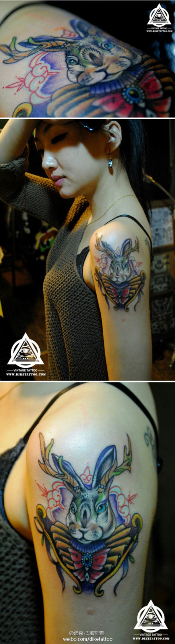 女生手臂时尚经典的鹿角兔子纹身图案_女生纹身图案大全_纹身图吧