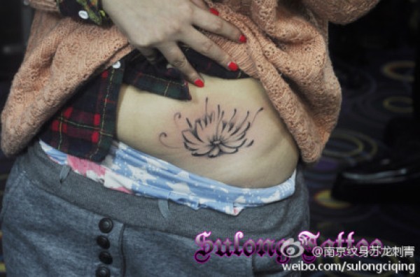 女生腹部唯美时尚的莲花纹身图案_女生纹身图案大全_纹身图吧