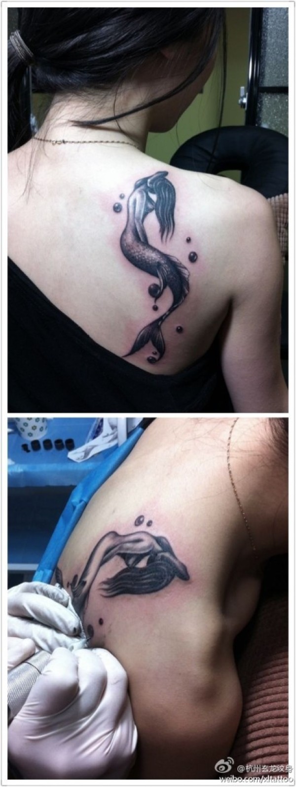 女生肩背唯美时尚的美人鱼纹身图案_女生纹身图案大全_纹身图吧