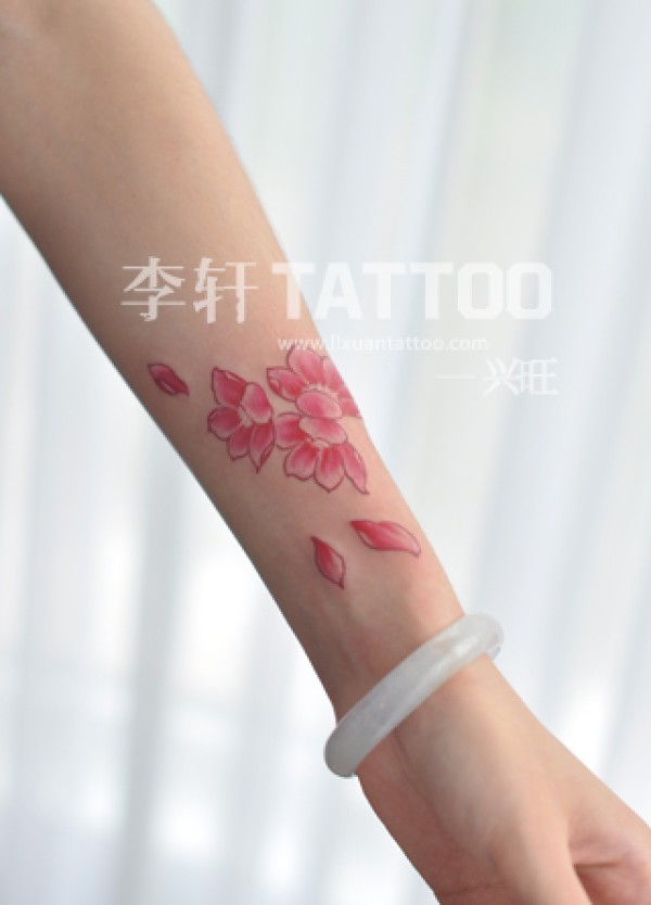 女生手臂唯美精美的樱花纹身图案_女生纹身图案大全_纹身图吧