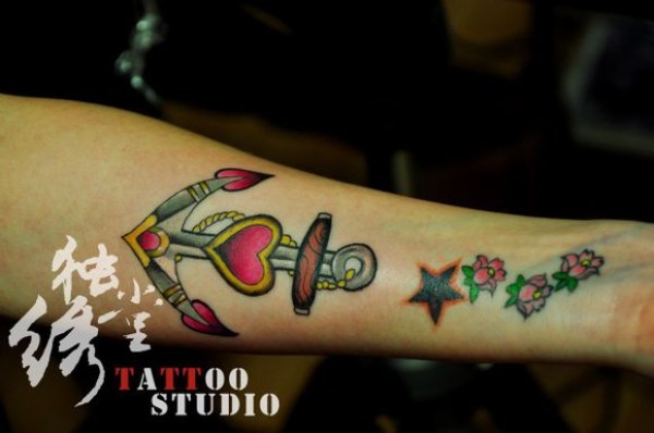 女生手臂漂亮精美的船锚纹身图案_女生纹身图案大全_纹身图吧