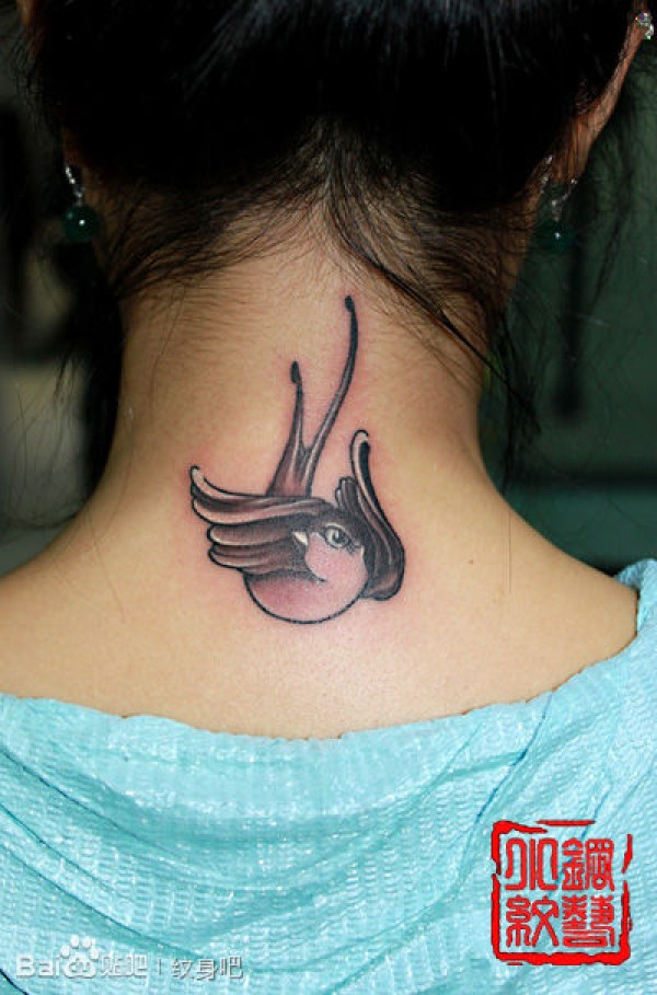 女生颈部小巧流行的小燕子纹身图案_女生纹身图案大全_纹身图吧