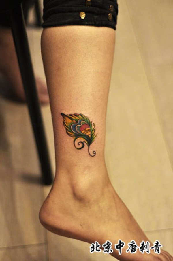 女生小腿时尚漂亮的孔雀羽毛纹身图案_女生纹身图案大全_纹身图吧