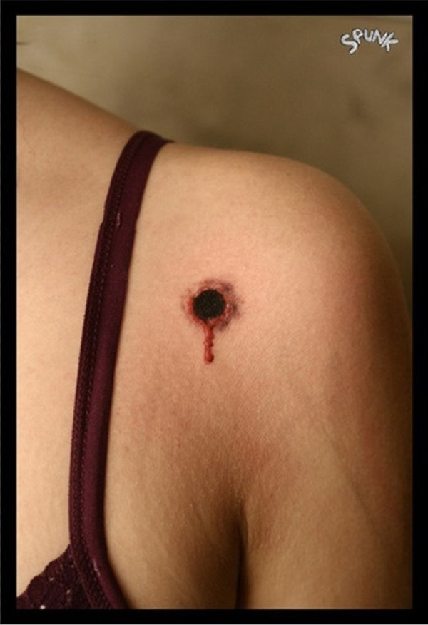 女生肩膀处时尚简单的弹孔纹身图案_女生纹身图案大全_纹身图吧