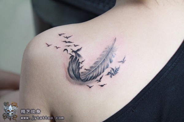 女生肩背流行精美的羽化燕纹身图案_女生纹身图案大全_纹身图吧