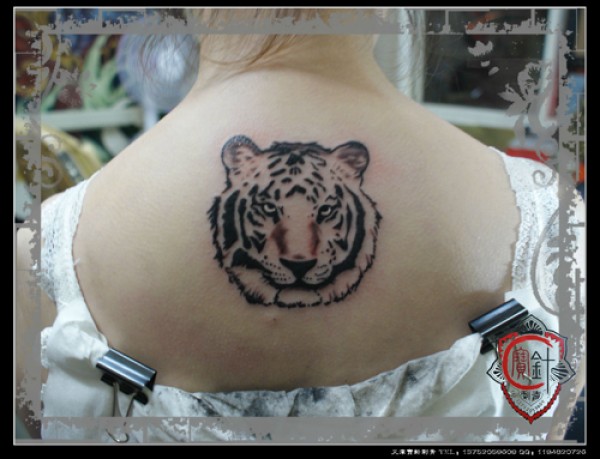 女生背部经典流行的虎头纹身图案_女生纹身图案大全_纹身图吧