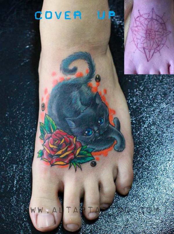 女生脚背可爱流行的小猫咪纹身图案_女生纹身图案大全_纹身图吧