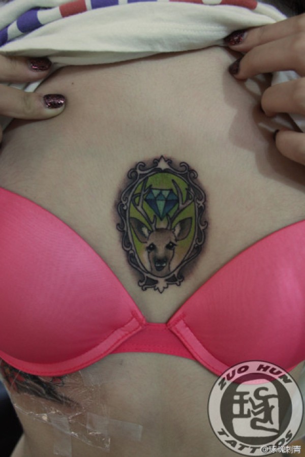 女生前胸好看经典的小鹿与钻石纹身图案_女生纹身图案大全_纹身图吧
