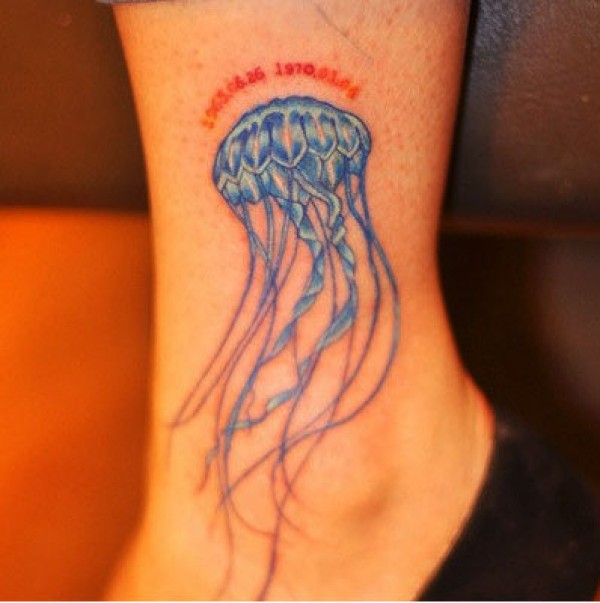 女生脚部好看时尚的水母纹身图案_女生纹身图案大全_纹身图吧