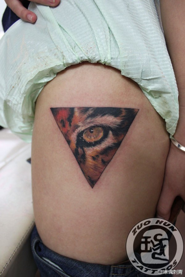 女生腿部漂亮的老虎眼睛纹身图案_女生纹身图案大全_纹身图吧