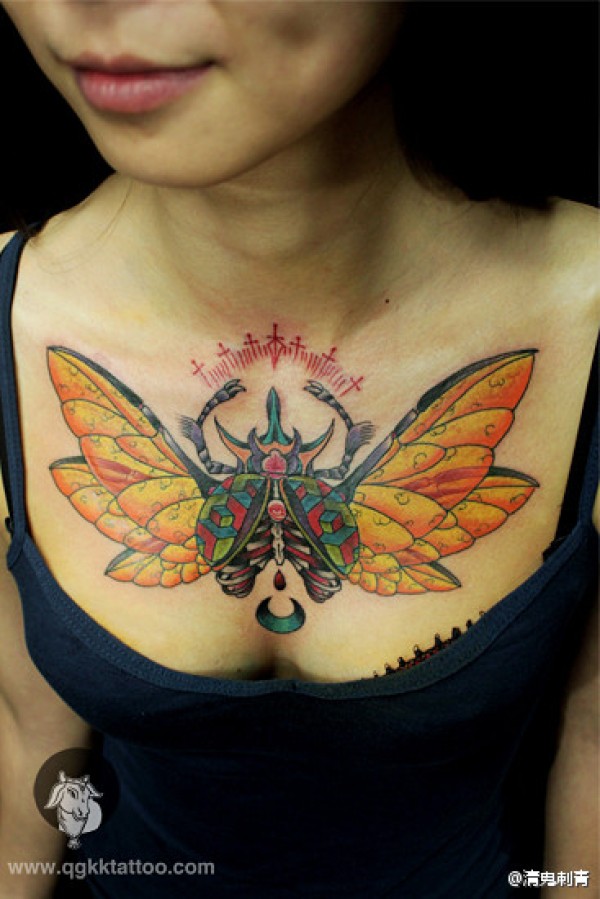 女生前胸超酷的昆虫纹身图案_女生纹身图案大全_纹身图吧