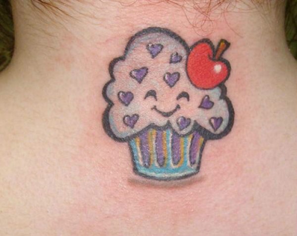 女生颈部可爱的冰激凌纹身图案_女生纹身图案大全_纹身图吧