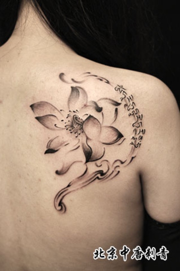 女生背部时尚唯美的黑白莲花纹身图案_女生纹身图案大全_纹身图吧