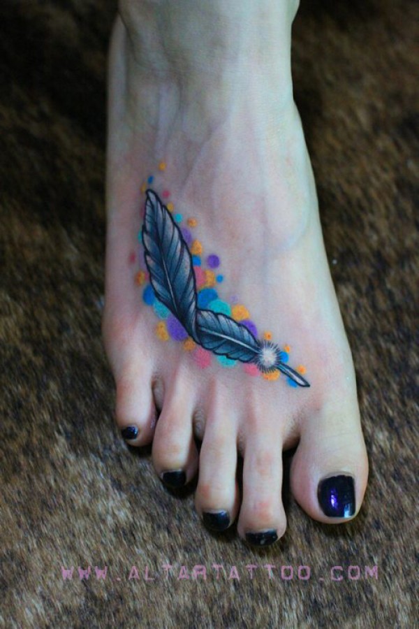 女生脚背漂亮的彩色羽毛纹身图案_女生纹身图案大全_纹身图吧