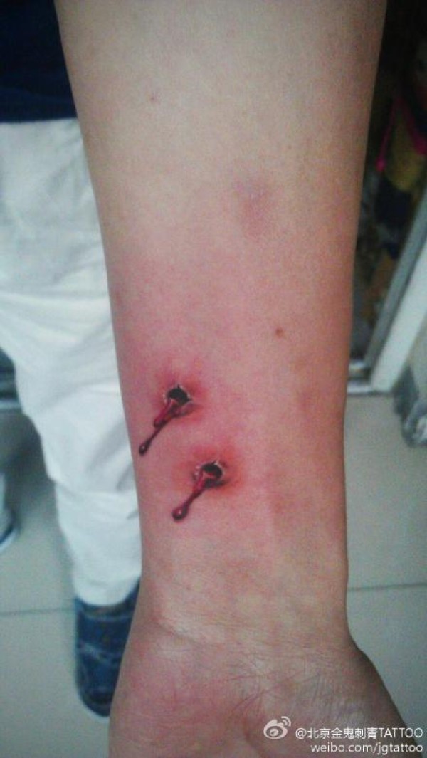 女生手腕时尚另类的吸血鬼牙印纹身图案_女生纹身图案大全_纹身图吧