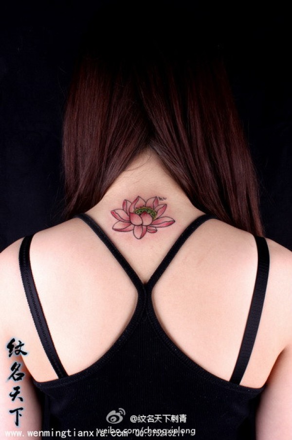 女生颈部时尚唯美的莲花纹身图案_女生纹身图案大全_纹身图吧