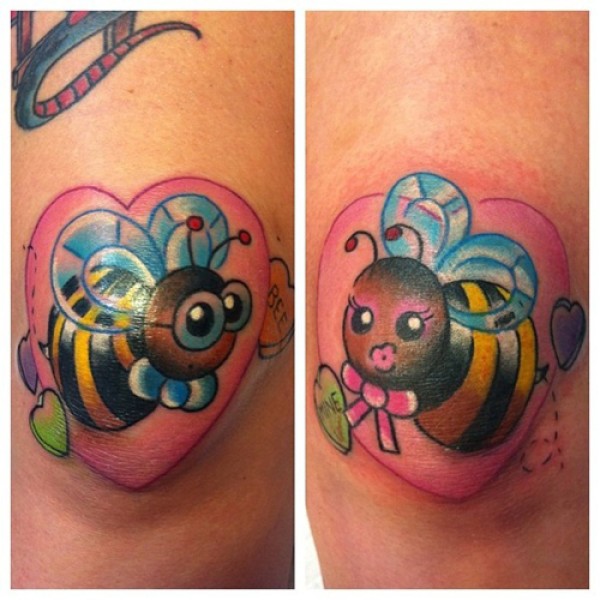 女生膝盖骨可爱的小蜜蜂纹身图案_女生纹身图案大全_纹身图吧
