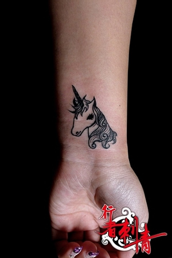 女生手腕处小巧的独角兽纹身图案_女生纹身图案大全_纹身图吧