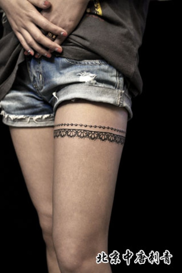 女生大腿时尚性感的蕾丝纹身图案_女生纹身图案大全_纹身图吧