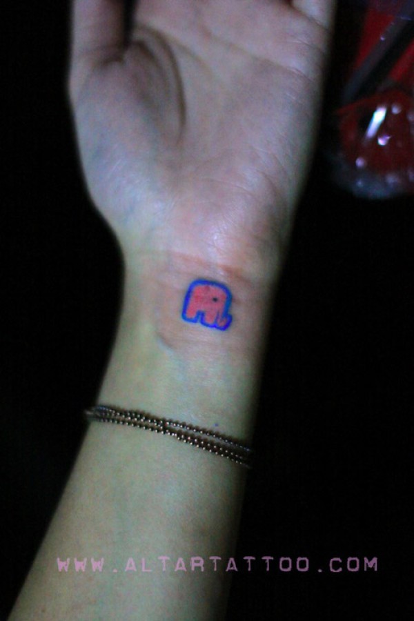 女生手腕处可爱的彩色小象纹身图案_女生纹身图案大全_纹身图吧
