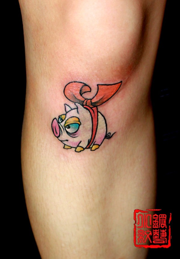 女生腿部可爱的小猪纹身图案_女生纹身图案大全_纹身图吧