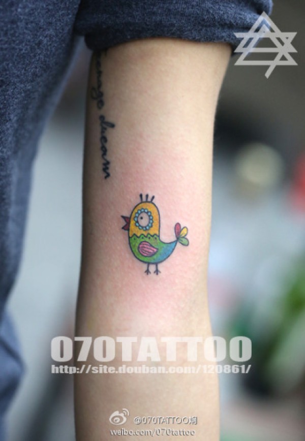 女生手臂可爱的小鸡纹身图案_女生纹身图案大全_纹身图吧
