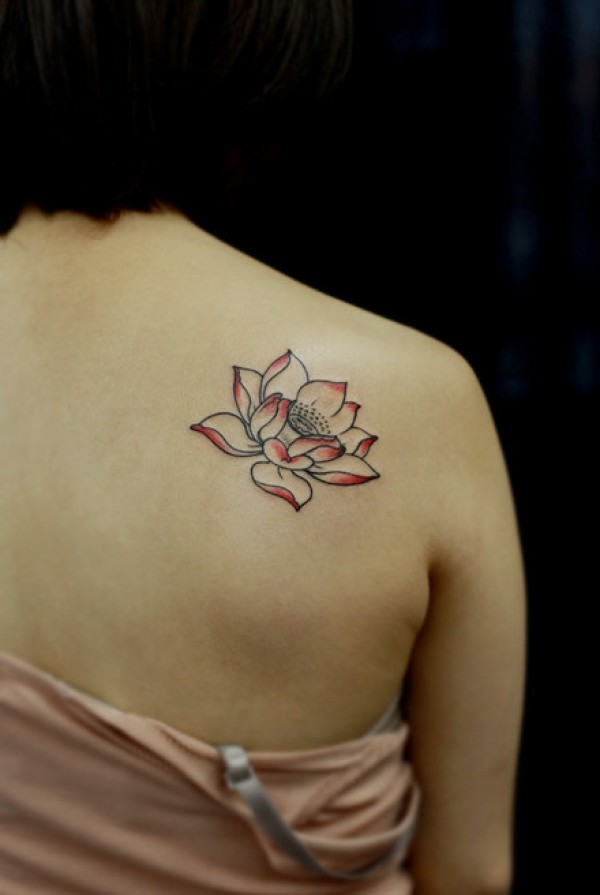 女生肩背流行时尚的莲花纹身图案_女生纹身图案大全_纹身图吧