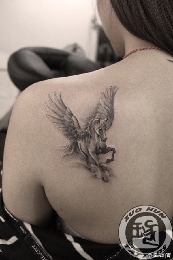 女生后背时尚经典的天马纹身图案_女生纹身图案大全_纹身图吧