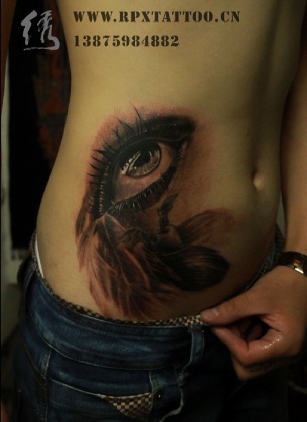 女生腹部唯美好看的眼睛纹身图案_女生纹身图案大全_纹身图吧