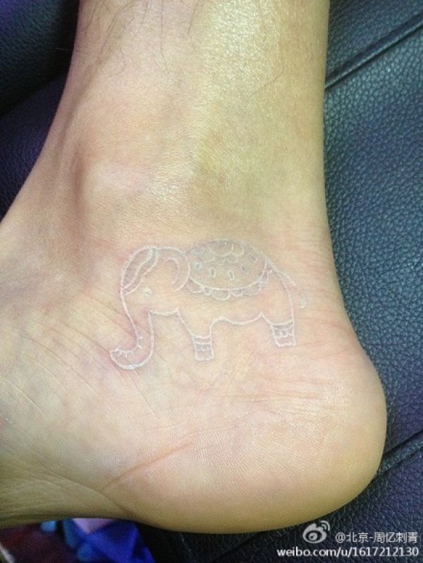 女生脚部白色小象纹身图案_女生纹身图案大全_纹身图吧