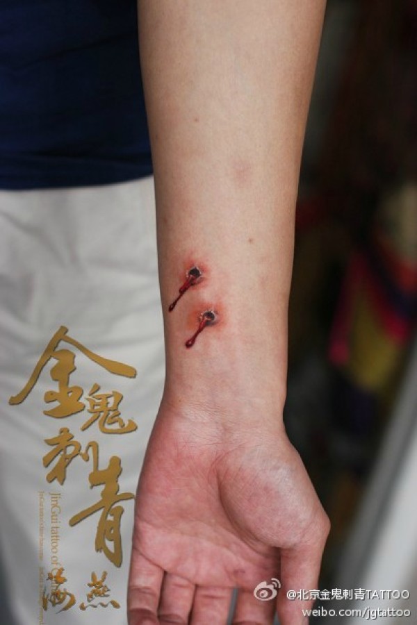 女生手腕处时尚流行的吸血鬼牙印纹身图案_女生纹身图案大全_纹身图吧