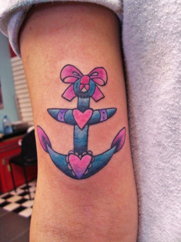 女生手臂时尚好看的船锚纹身图案_女生纹身图案大全_纹身图吧