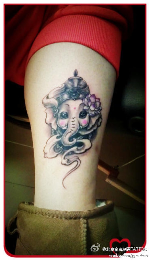 女生腿部可爱的小象神纹身图案_女生纹身图案大全_纹身图吧