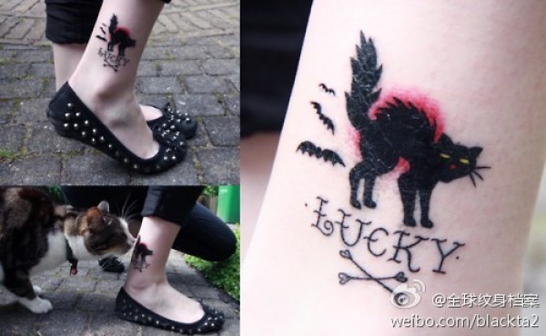 女生腿部时尚流行的猫咪纹身图案_女生纹身图案大全_纹身图吧