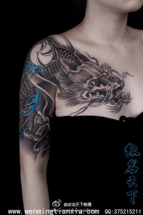 一款霸气的女生的披肩龙纹身图案_女生纹身图案大全_纹身图吧