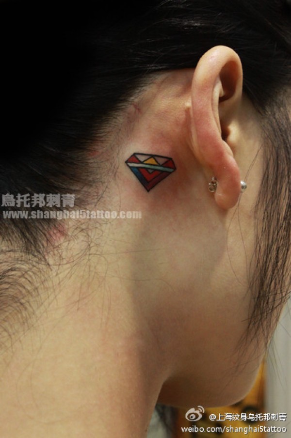 女生耳部彩色小钻石纹身图案_女生纹身图案大全_纹身图吧