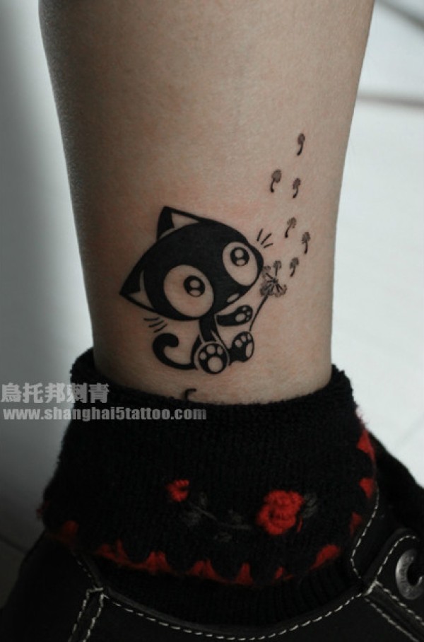 女生腿部时尚流行超可爱的猫咪纹身图案_女生纹身图案大全_纹身图吧